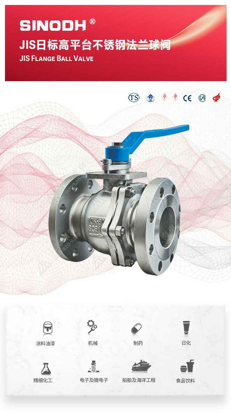 JIS日标高平台不锈钢法兰球阀,为开云网页版·官方端在线-开云(中国)自主研发生产本产品设计制造标准符合J1 SB2071标准,该产品的球体(密封件)是浮动的,在介质压力作用下,球体能产生-定的位移并紧压在出口端的密封面上,保证出口端密封。适用于水、溶剂、酸和天然气等一般工业介质,也适用于工况恶劣的介质,如氧气、过氧化氢、乙烯等介质。